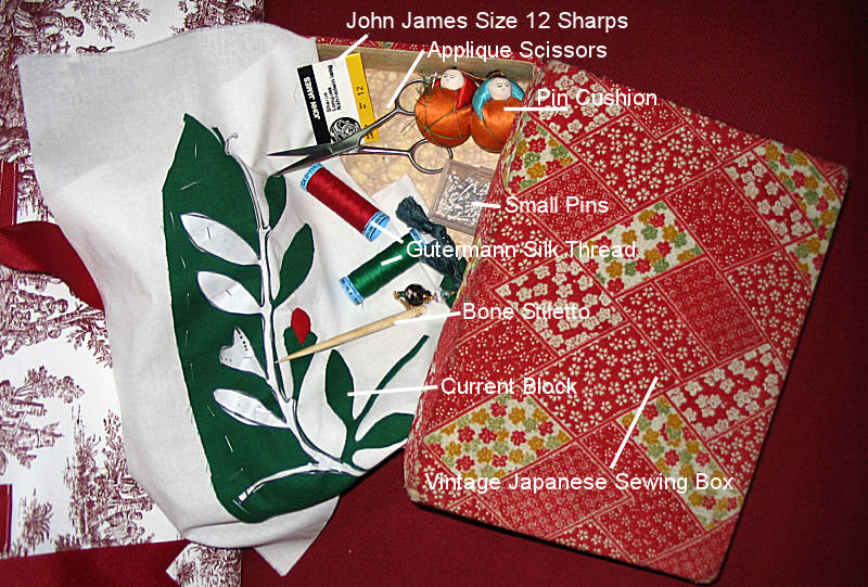 smallest appliqué needle possible. I prefer size 12, but 11 is fine too.