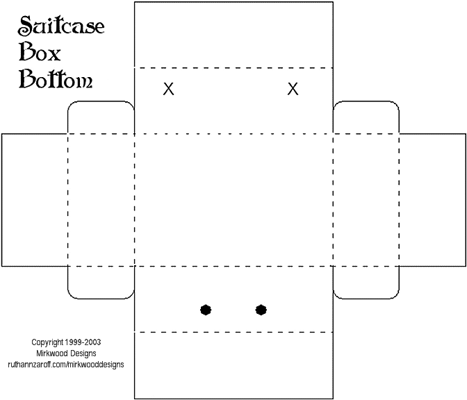 CLICK HERE FOR SUITCASE TOP TEMPLATE CLICK HERE FOR SUITCASE BOTTOM TEMPLATE Note: Please make sure your printing margins are set to .5 inches (half an inch) or the template may not print completely. In your browser's Menu bar, select File > Page Setup, and change the margin settings to .5. (The selections may be slightly different between browsers.) |