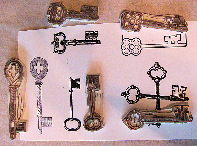 link to my Soft-Block Carving site above). At right you can see the clip art images and my carved stamps. |