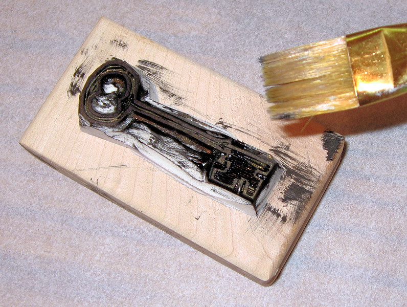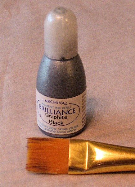 online). At right is a picture of a Brilliance re-inker and the flat stiff-bristled artist's brush I use. |