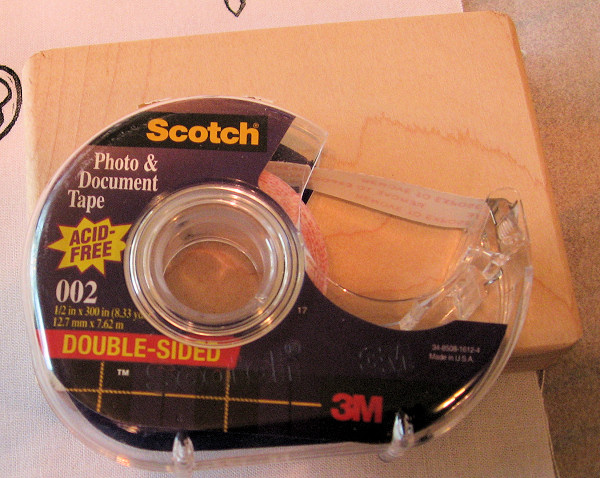 mount, but I feel it gives me more control than just the carved block. At top right is a mounted stamp, and at bottom right is the double-sided tape I used. |