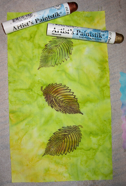 piece of fabric that I stamped and painted (using Shiva oil paint sticks)
